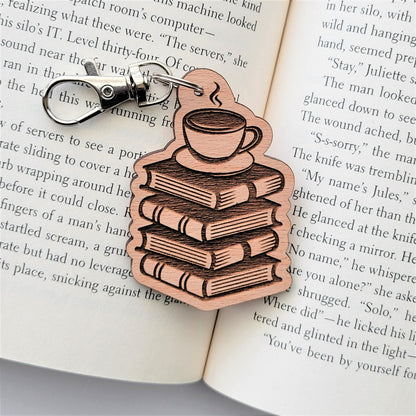 Coffee & Books Wooden Keychain